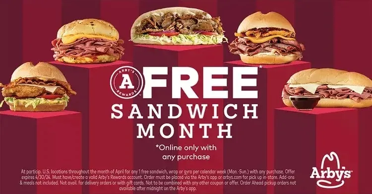 Arby’s is rolling out a tasty promo—“Free Sandwich Has Entered the Chat.” Sign up for Rewards text alerts via the app or website, and you’ll receive a digital coupon for a free sandwich, no purchase needed.